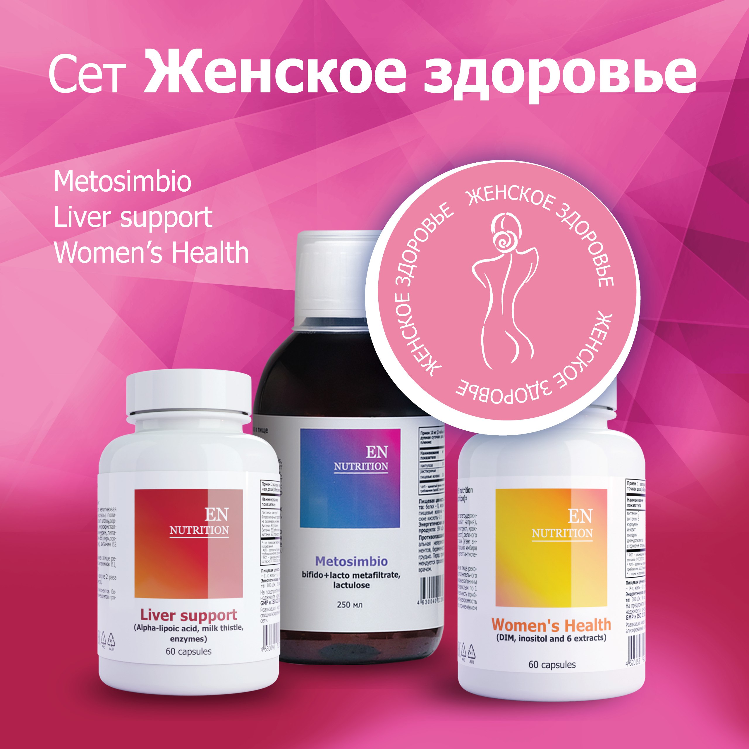 Сет для женского гормонального здоровья, направленный на коррекцию кишечного микробиома, запуска детокса печени и регуляции эстрогенного баланса.